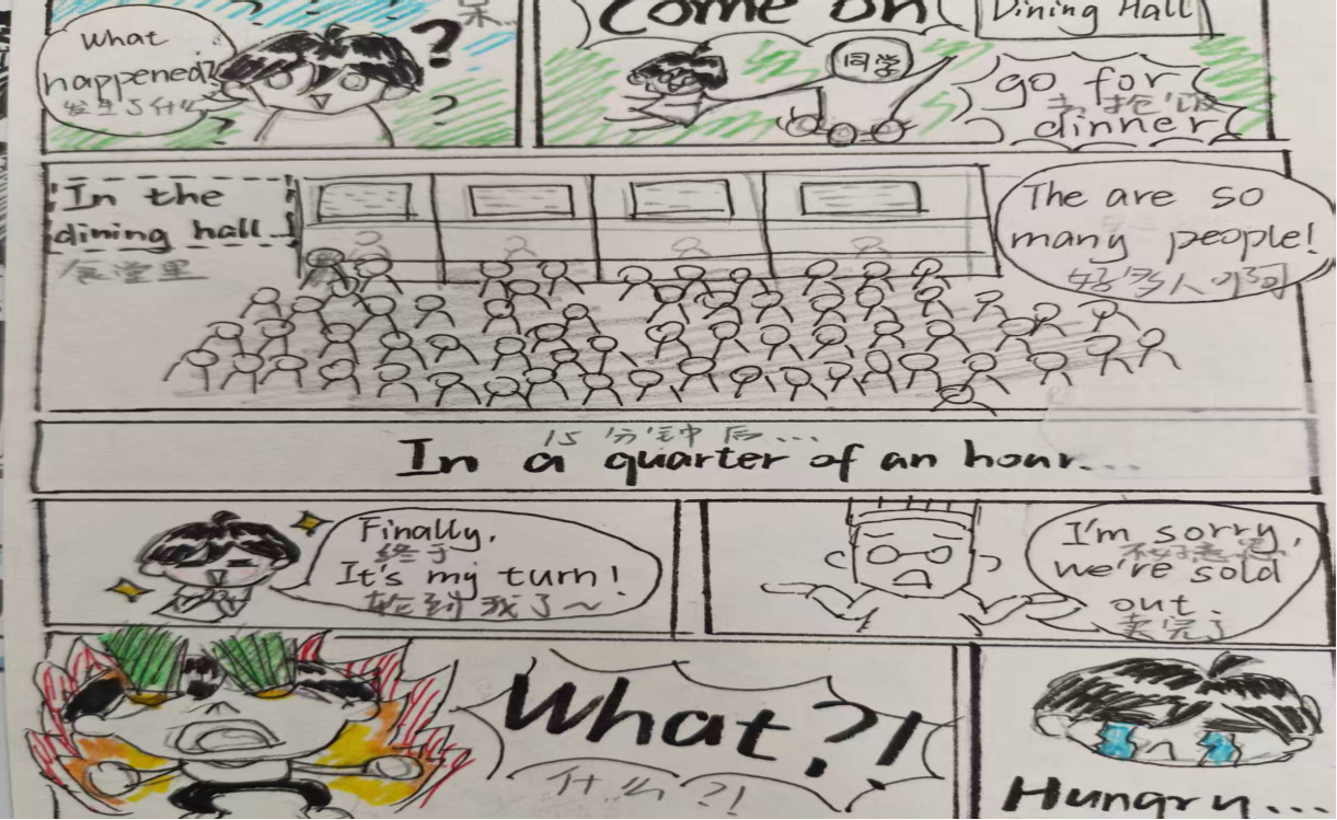 在个人作业板块,“入学第一天的英语自述”和“个性化简介”成为热门选择。学生们或用漫画形式记录踏入校园时各种片段,或分享第一次走进教室时“既紧张又期待的心情”,还有人在简介里附上自己的兴趣爱好,甚至用简单的英语短句介绍家乡的特色美食。“这些内容看似简单,却给了学生用英语表达真实自我的机会。”英语教师吕老师解释,新生刚进入陌生环境,表达欲往往被胆怯掩盖,而以“自己的故事”为载体的作业,能让他们在熟悉的语境中自然运用语言,比单纯的语法练习更有温度。