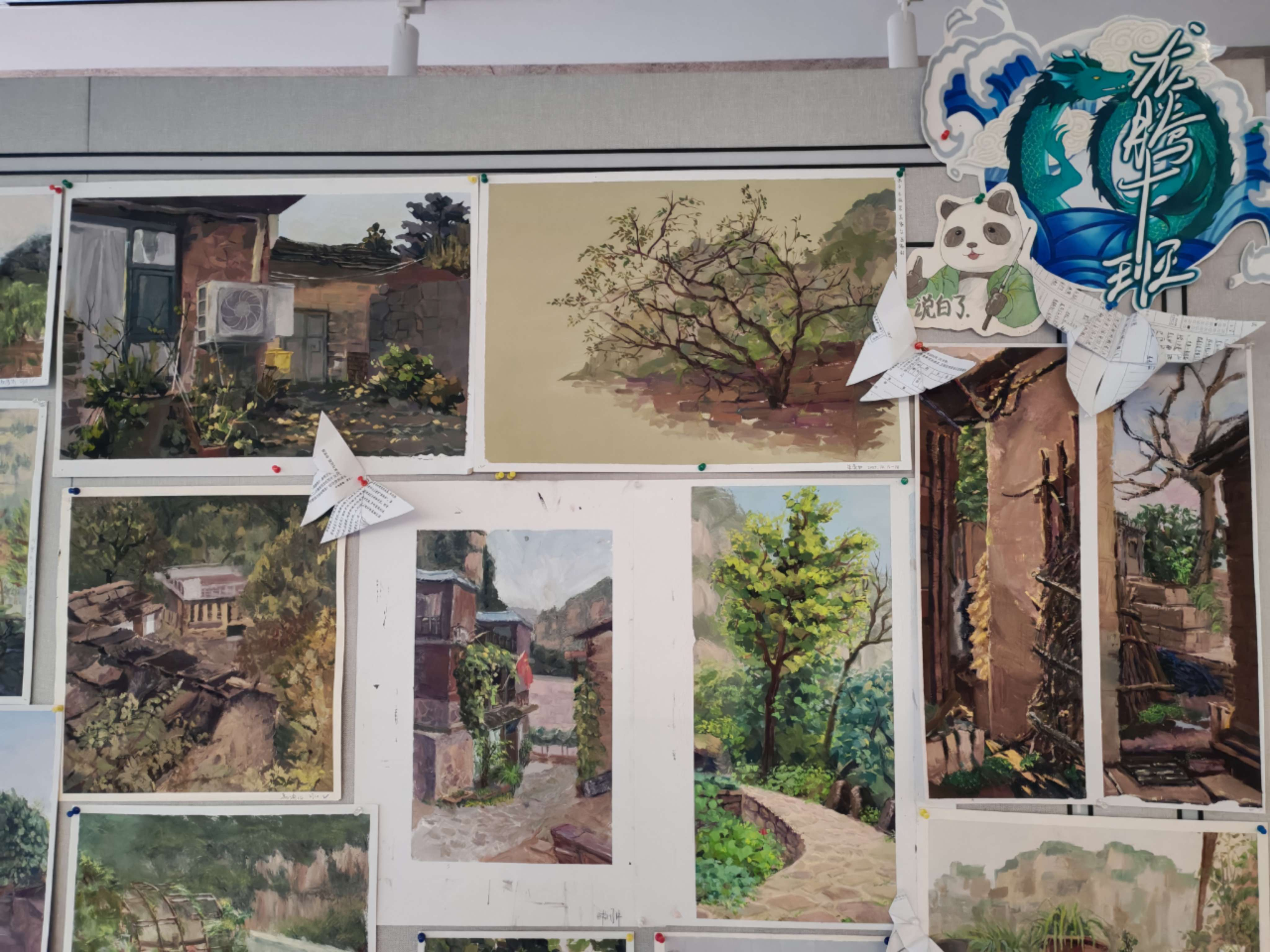 走进展厅,一幅幅色彩饱满、笔触生动的画作依次排开,瞬间将观者带入石板岩的壮丽山水之中。本次展览展出的作品题材丰富,构图新颖,既有对自然风光细腻的刻画,也有对光影色彩大胆的表达。尤为可贵的是,“各班方向明确”——有的班级侧重于对自然光影的捕捉,画面充满空气感;有的班级专注于色彩关系的探索,作品色调和谐而富有张力;还有的班级在构图和形式上大胆创新,展现出当代青年独特的艺术视角。每一幅作品都不仅仅是风景的再现,更是同学们观察、思考与情感的结晶,充分体现了他们扎实的专业基础和蓬勃的艺术创造力。