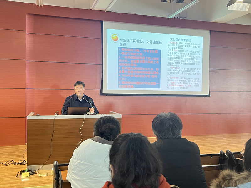 高三年级作为首批进入主会场的群体,家长们齐聚五楼报告厅,聆听胡庆周校长的专题讲座。胡校长围绕“家校携手 通力合作 筑梦未来”主题,结合省统考落幕的关键节点,向家长们传递信心,指明方向:“请各位家长充分相信学校的规划——从专业课复盘到文化冲刺,我们已为孩子们制定了科学的后续方案,只需跟着节奏稳扎稳打,每一步都会离目标更近。”他进一步倡议家长与学校同向而行,形成育人合力:“一方面,希望家长做好孩子的‘后勤护航员’;另一方面,要重视孩子文化课的学习,让文化学习与专业成长齐头并进。”胡校长的话为家长提供了清晰可操作的家校共育路径,赢得了现场家长的阵阵掌声。