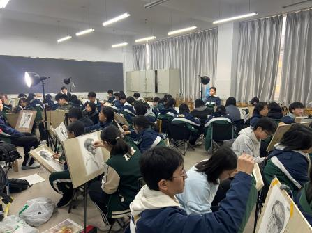在学校的专业画室里,考试气氛严肃而专注。学生们全神贯注地面对着自己的画板,有的在静物素描前细致观察,捕捉明暗交界线的微妙变化;有的则在色彩静物前凝神构思,思考如何调配出最和谐、丰富的色调关系。监考老师们轻声巡考,认真履行着职责,确保这场专业评测的公平与严谨。