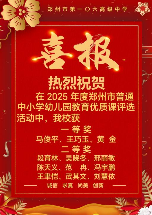 近日,郑州市第一〇六高级中学教师在郑州市及国家级教学评选活动中屡创佳绩、捷报频传,展现了卓越的教学实力与深厚的专业素养,为学校赢得了广泛赞誉。
