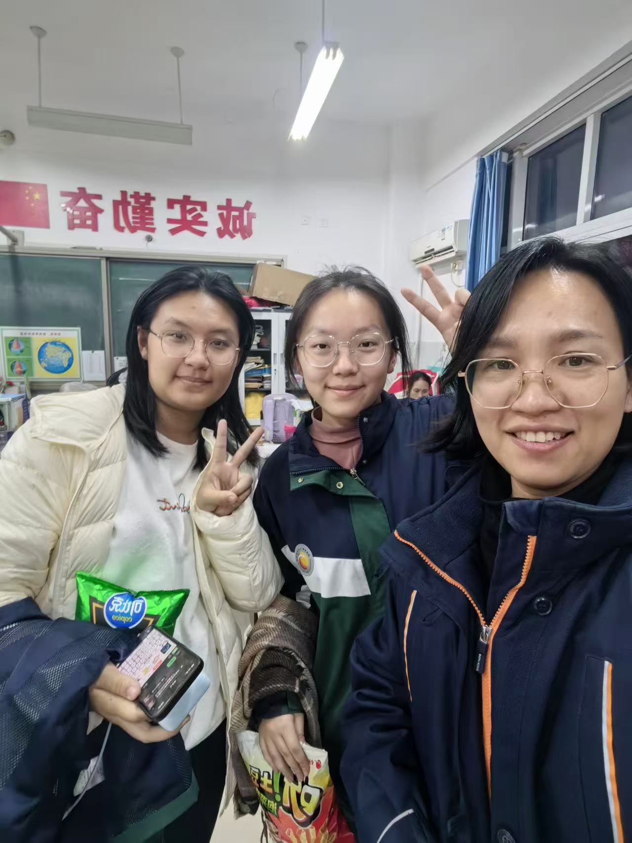 高一9班李善冰5班李宗闻看望初中班主任