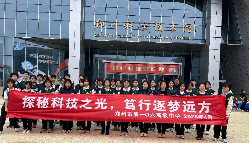 为深入落实郑州市家校社协同育人 “教联体” 建设要求,依托馆校协同育人机制,4月12日,郑州市第一〇六高级中学组织入团积极分子走进郑州市科技馆,开展 “感悟科技魅力・厚植家国情怀” 主题研学实践活动,将科普资源与思政教育深度融合,助力学生在沉浸式体验中开阔视野、锤炼品格。