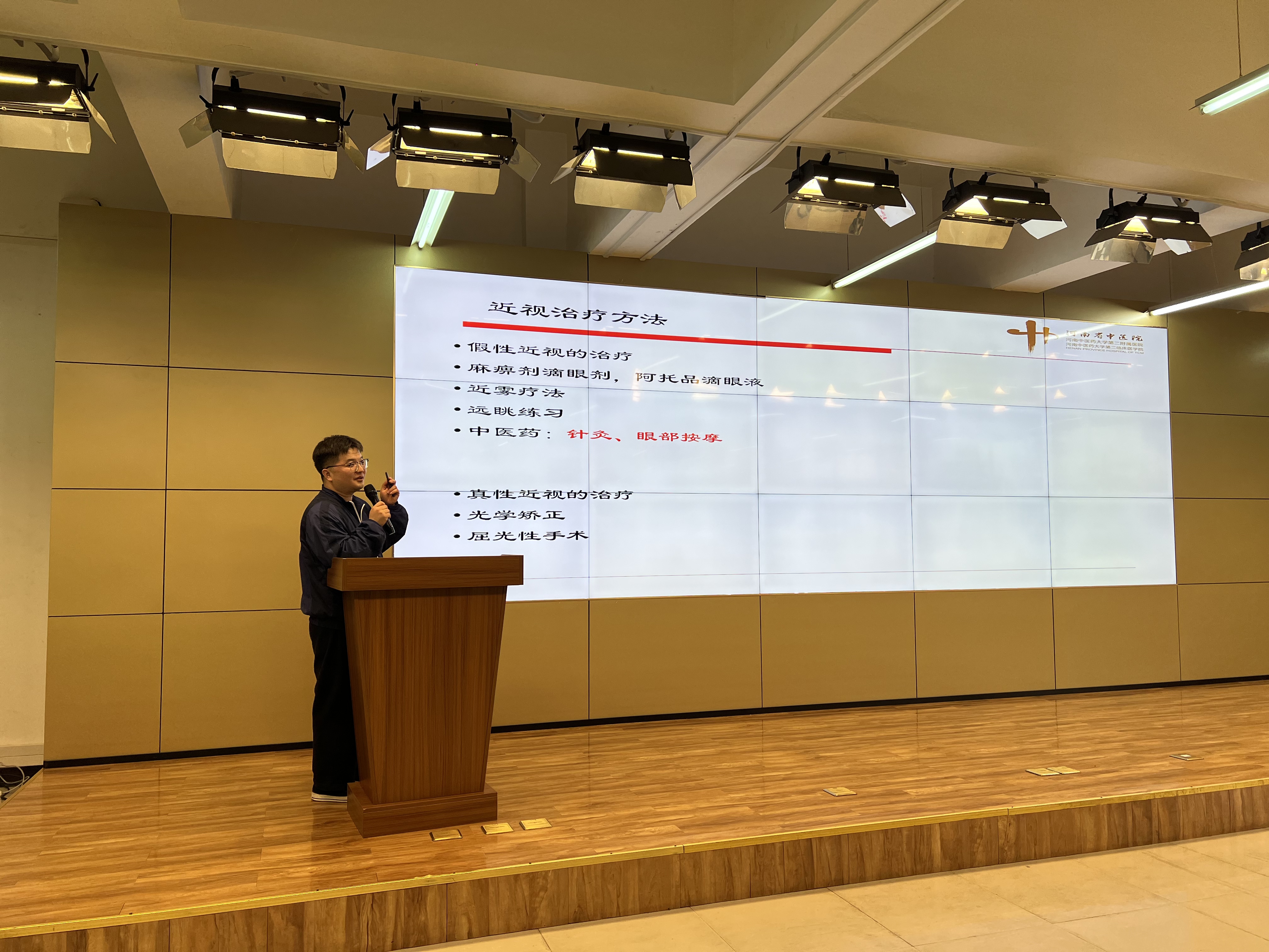 为进一步加强学生近视防控工作,普及科学护眼知识,引导青少年养成良好用眼习惯,4 月 14 日下午,我校在高二五楼报告厅举办“中医药预防近视”专题健康讲座。本次讲座特邀河南省中医院健康体检中心主治医师孙明星主讲,高一高二学生代表到场聆听。