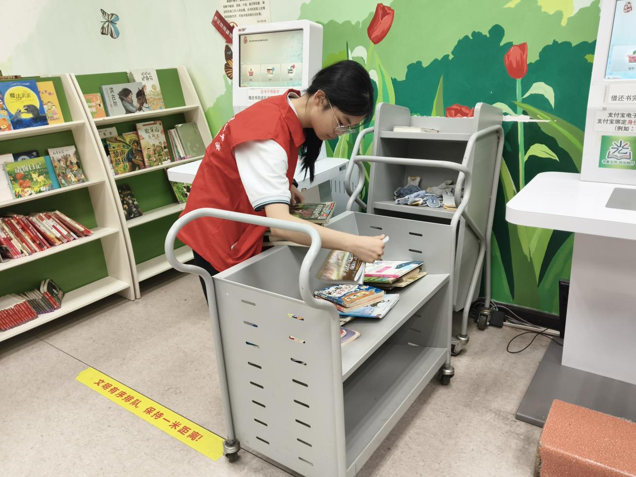 志愿者将图书归位