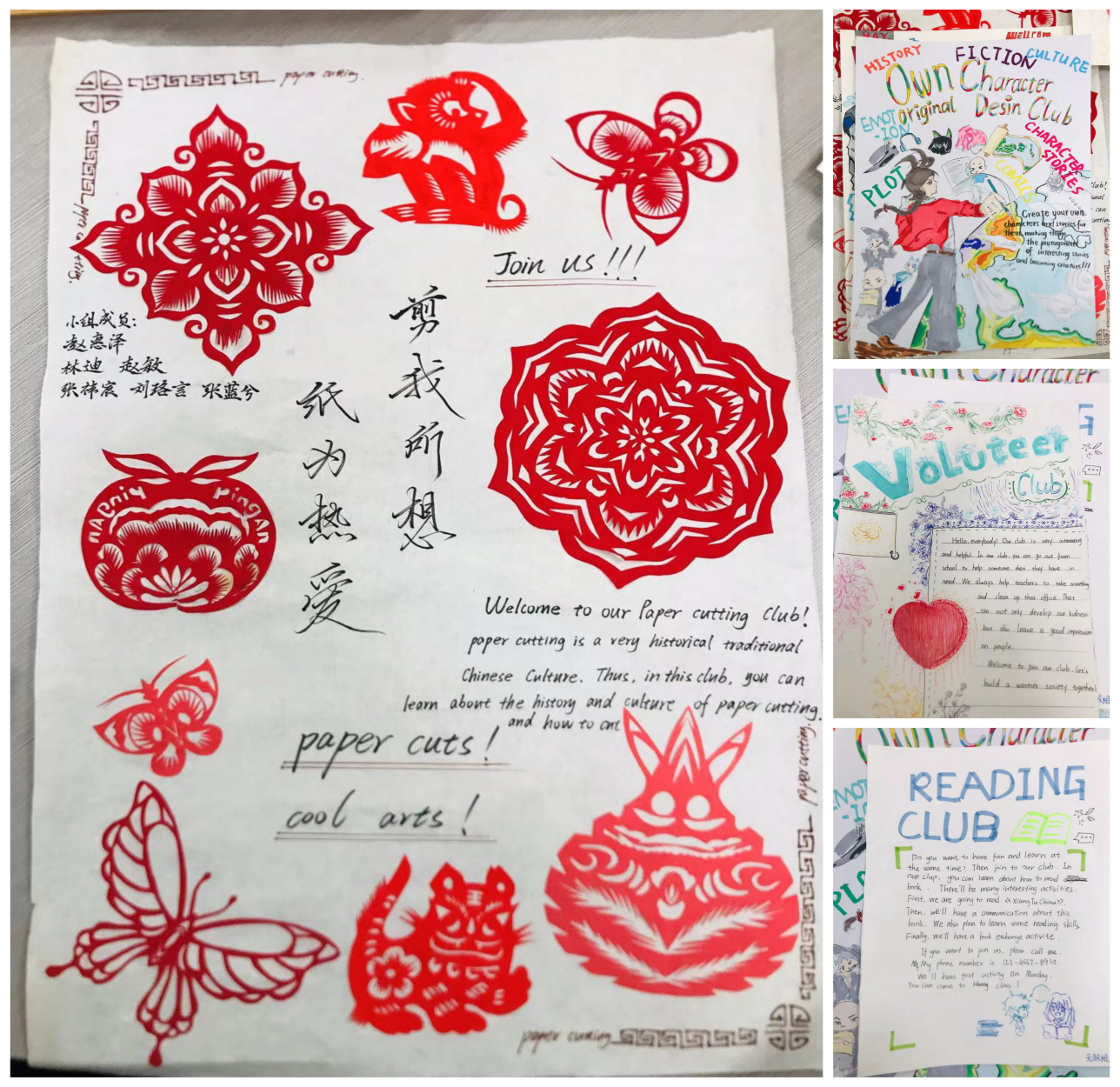 “以前总觉得英语作业就是背单词、写句子,没想到这次要和同学一起设计社团海报。”高一(1)班学生赵同学拿着刚完成的“剪纸社招募海报”笑着说。海报上,她用传统的简直图案作装饰,下方配着精心撰写的英语招募文案,不仅标注了社团活动时间,还俏皮地用“Join us, perfect arts, cool art!”作为标语。这份作业并非个例,据悉,高一英语组此次推出的创新作业,从形式到内容都紧扣新生需求,形成了“个人表达+小组协作”的双轨模式。