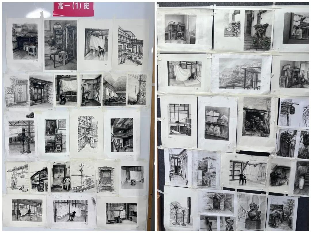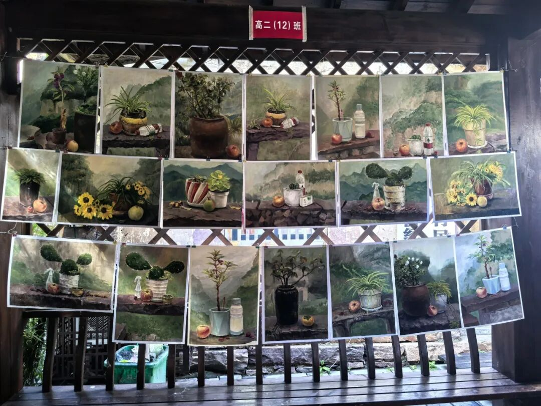 为保障画展圆满呈现,班主任与美术教师通力协作,细致勘验展厅环境,并精心规划布展方案。师生同心协力,共同完成了展陈布置的各项工作,为展览的顺利启幕进行了周密筹备。