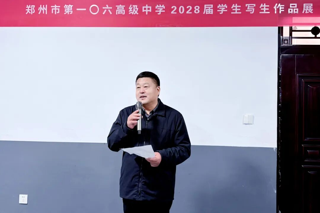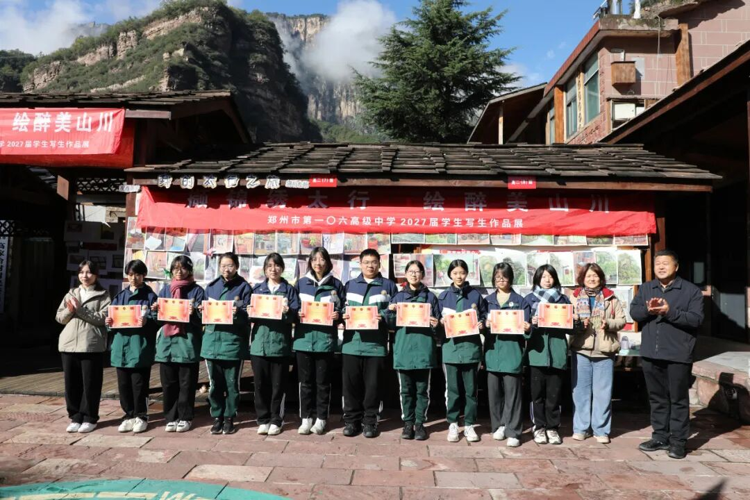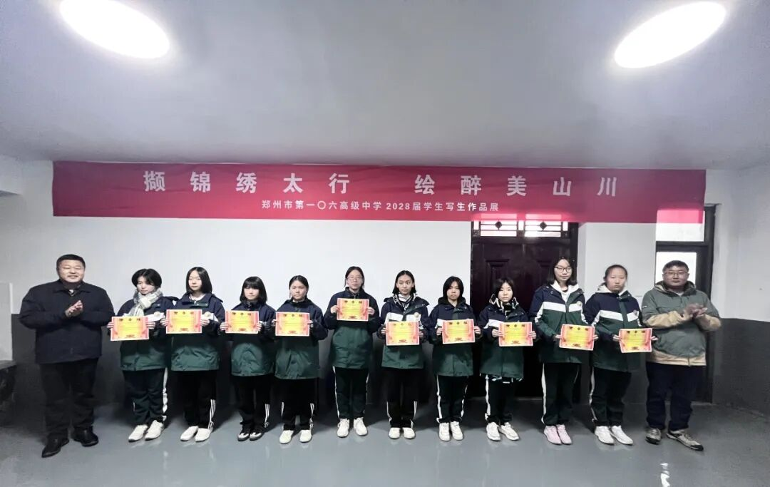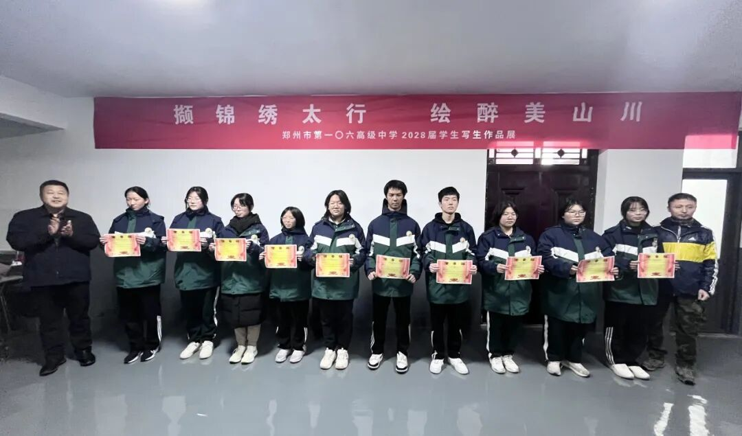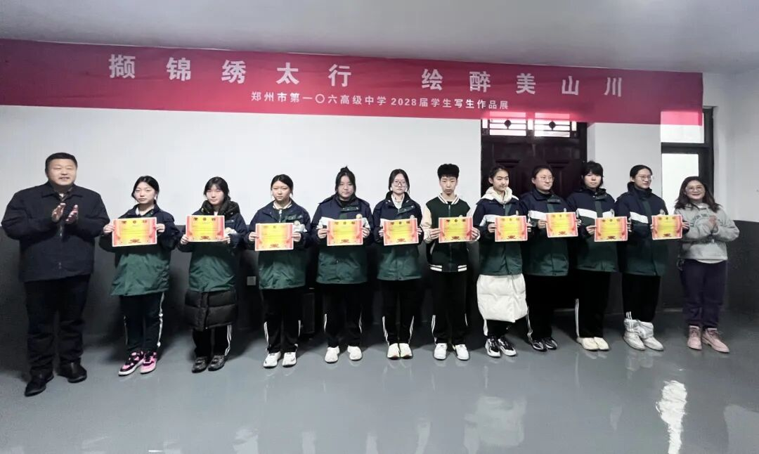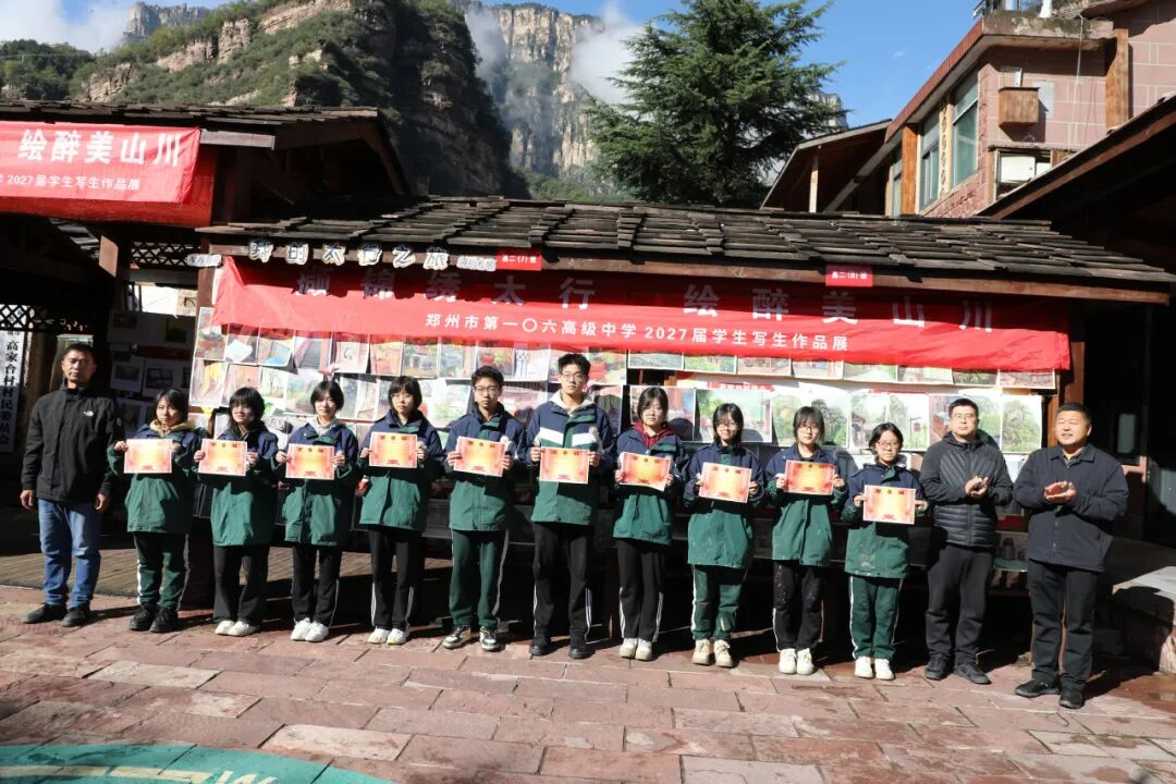 为展示学生优秀画作,促进同学之间学习交流,郑州市第一〇六高级中学高一、高二年级在石板岩举办了写生优秀作品展。校党委书记李明德参加了以“撷锦绣太行,绘醉美山川”为主题的学生画展并为获奖学生颁发奖项。