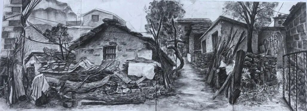 于巍巍太行的怀抱中,学子们沉醉于自然的脉动,共享集体的温情,更淋漓挥洒着艺术的激情。一笔一触间,非仅绘形着色,更是心灵与肃穆山川、草木生灵、石韵古村之间无声而深情的对语,将这段旅程中无数闪亮而珍贵的吉光片羽,悄然定格于画纸之上,亦铭刻于心湖深处。