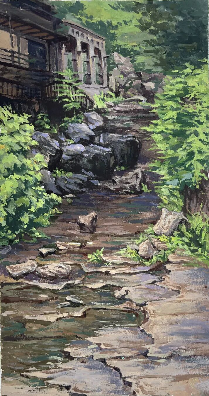 此次写生,旨在磨砺技艺,更在升华观察、思考与表达之能力。同学们习得多维审视自然,捕捉线条律动,并以多变笔触,勾连天地,映照葱茏,融汇古今。高一学子初探艺海之广阔,高二学子则精进尤著,其水粉技艺由生涩至娴熟,色彩运用日趋成熟,尽显蜕变之姿。每一次调色落笔,皆是对自然美的深刻体认与艺术表达的真诚实践。画作所现,不仅是太行巍峨、溪流灵动、村落古朴、今昔和谐之自然万象,更是他们对美之独特解读与深沉情感的镌刻。他们正自技艺娴熟的画者,稳步成长为敏锐捕捉生活之美、真挚表达内心世界的艺术创作者。
