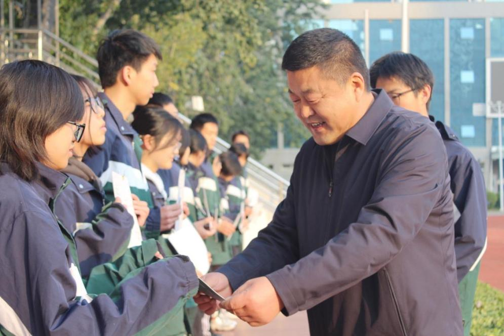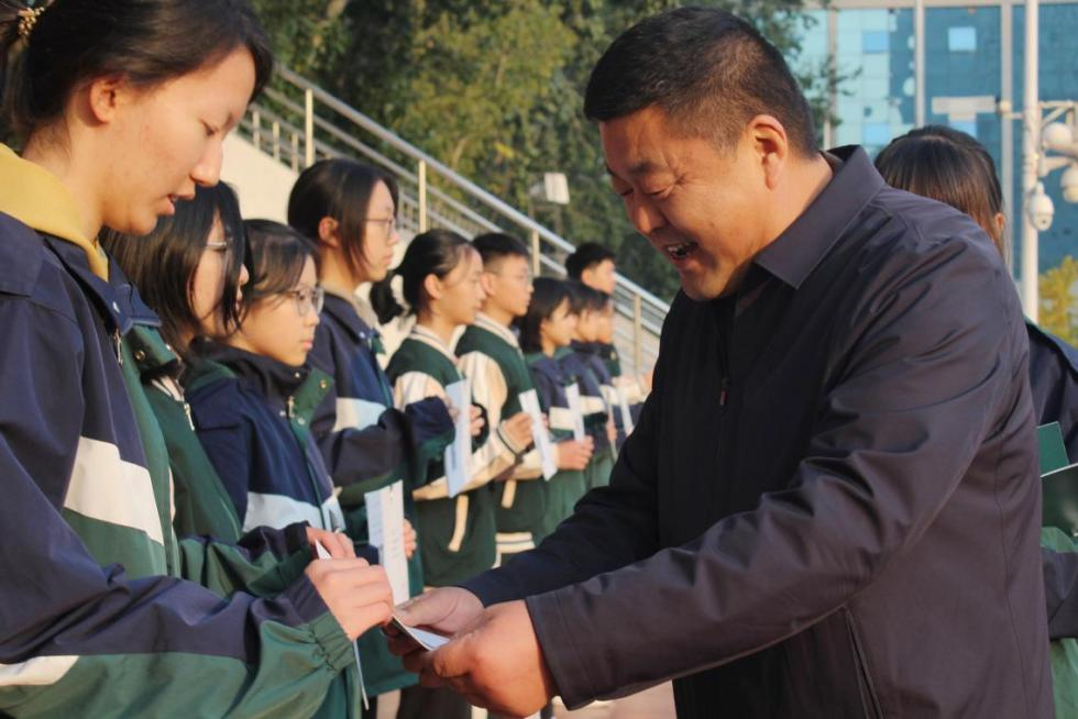 李书记为高二年级获表彰同学颁发证书