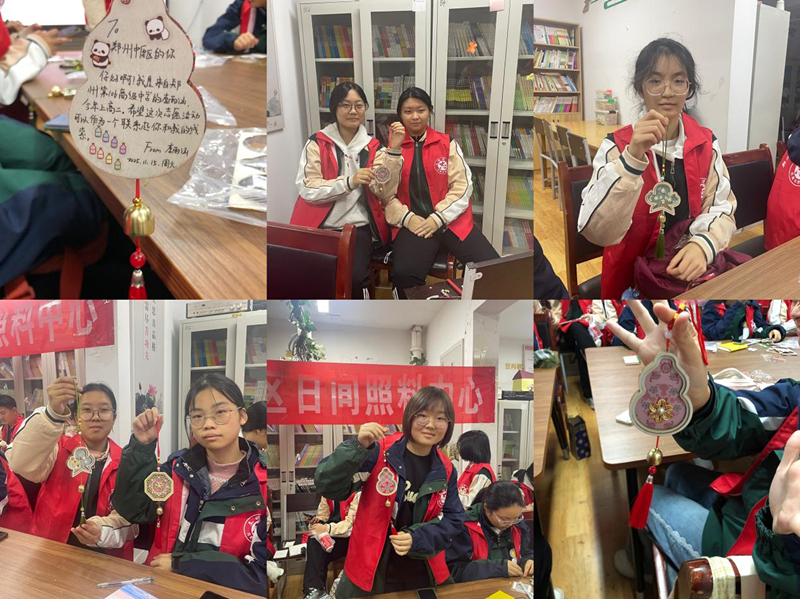 培训结束后,同学们开启了手工创作与心意传递环节。大家专心致志地制作精美的手工挂饰,从材料组装到细节打磨,每一步都倾注了对志愿服务的热忱。同时,志愿者们还精心书写明信片,将对“爱益联”社会工作服务站的感谢与参与活动的感悟凝于笔端。一张张手写明信片、一个个创意手工挂饰,不仅是心意的传递,更是志愿精神的具象表达。