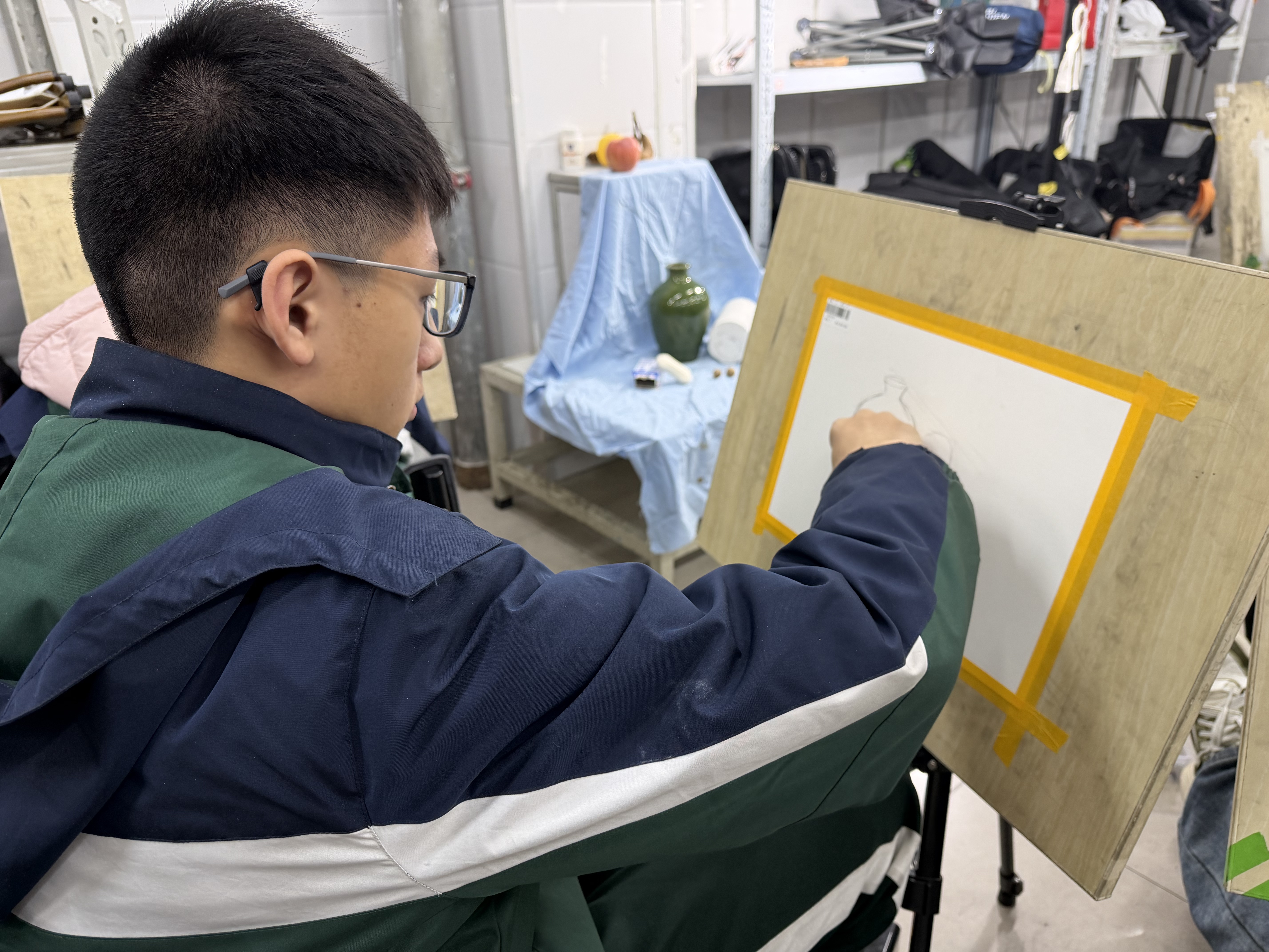 考场内,高一美术学子们以饱满的热情与专注的态度投入创作。他们手握画笔、凝神构思,在画纸上细细勾勒、层层渲染,将一学期以来在素描基础、速写技巧等方面的积累充分展现。教室里只听见画笔与画纸的轻触声,同学们时而俯身观察、时而凝神思索、时而挥笔疾书,专注的神情与认真的姿态,构成了一幅充满艺术气息的考场画卷。从静物的光影塑造到人物动态的瞬间捕捉,每一幅作品都凝聚着学子们的汗水与心血,也彰显了他们对艺术追求的执着与热爱。