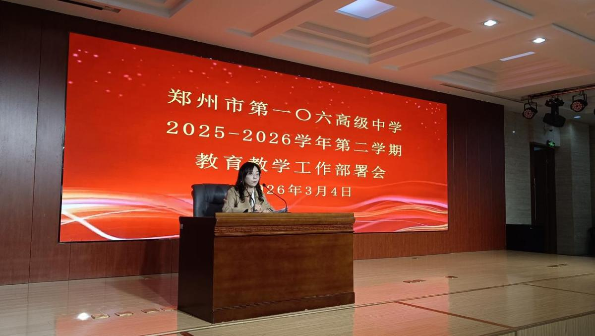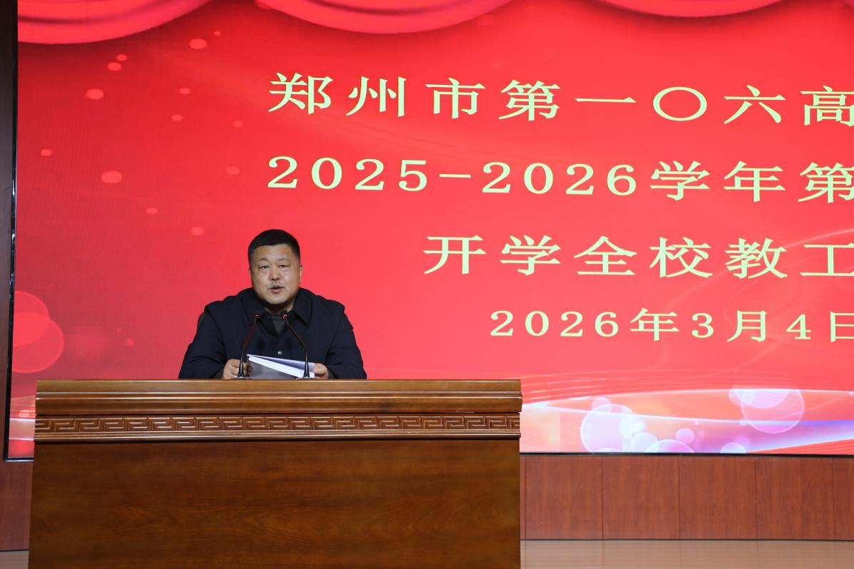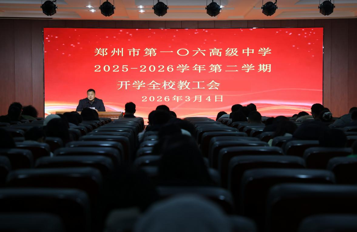 3月4日,郑州市第一〇六高级中学召开以“坚持文专双强精进 推动特色高位发展”为主题的全体教工会。会议围绕教育教学优教提质、校园安全与文明创建、新学期发展规划等任务,对新学期工作进行系统安排、周密部署。