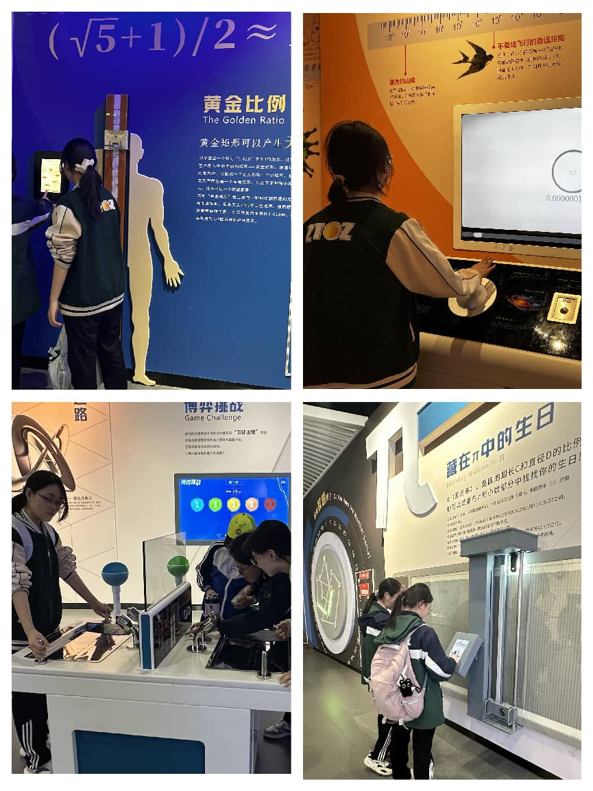 数学展区同样吸引了众多同学驻足。大家通过互动装置探索圆周率,在π的数字序列中查找生日信息,结合黄金比例展项了解数学美学的应用,并通过莫比乌斯环等模型感受拓扑几何的独特魅力。